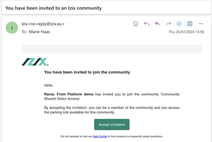 The invited member organisation (administrator) will receive an email invitation:
