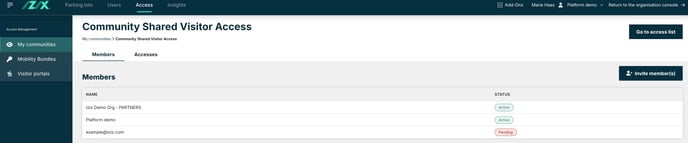 Definition: A community is a group of organisations sharing access rights to a selected number of parking spots.