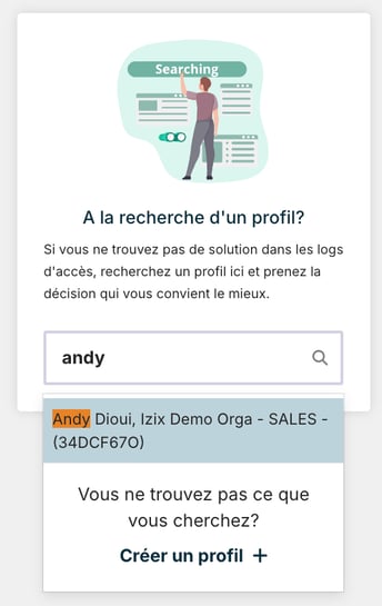 En fonction de l'identifiant, le système indique si le profil est connu ou non.