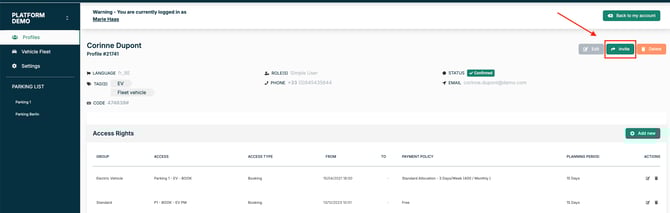 - Une fois le profil est invité manuellement, le statut passe à « en attente ».