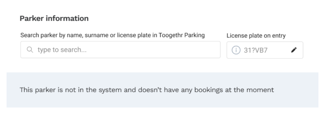 4. Sie können nun den Parker auswählen. Falls das Kennzeichen keine Ergebnisse anzeigt, gibt es auch die Möglichkeit, nach Namen zu suchen. Alle Parker, die mit Kennzeichen oder Namen übereinstimmen, werden im grauen Bereich angezeigt. Dort kann der Parker ausgewählt werden.