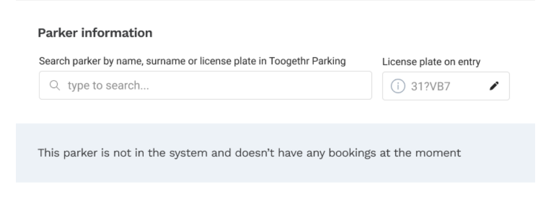 Let op: als het kenteken verkeerd of onvolledig is gelezen, zal het systeem hier vraagtekens invullen. Deze vraagtekens kunnen ingevuld worden om zo de parkeerder in het systeem te vinden. Zie de afbeelding hieronder:
