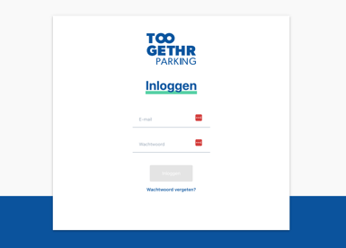 Ben je het wachtwoord vergeten en kan je niet meer inloggen? Klik dan op de Wachtwoord vergeten? link die weergeven staat onder het inlog paneel. Voor operator accounts vind je deze link via Toogethr Parking en voor parkeerders vind je deze link via de betreffende portal site van de vaste parkeerlocatie. Hier vul je het e-mailadres in waar je normaal mee inlogt en ontvangt vervolgens een mail met de mogelijkheid het wachtwoord te resetten. LET OP! Deze mail kan in de spamfolder terecht komen.