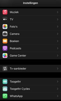 - Scroll naar beneden tot je bij de Toogethr app komt en tik hierop;