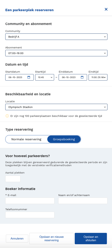 Groepsreserveringen kunnen ingezet worden bij evenementen of andere bijeenkomsten waar je meerdere parkeerders d.m.v. één en dezelfde verificatiemethode toegang wilt geven tot het parkeerterrein.