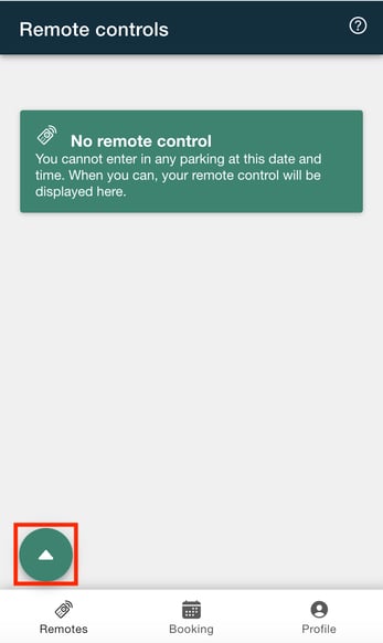 Als de interface van je app afwijkt van de bovenstaande of onderstaande afbeeldingen, komt dit waarschijnlijk door verschillende toegangsrechten. Afhankelijk van de toegangsrechten, lopende boekingen of iets dergelijks, zullen de beschikbare afstandsbedieningen en de mogelijkheid om een parkeerplaats te boeken verschillen.